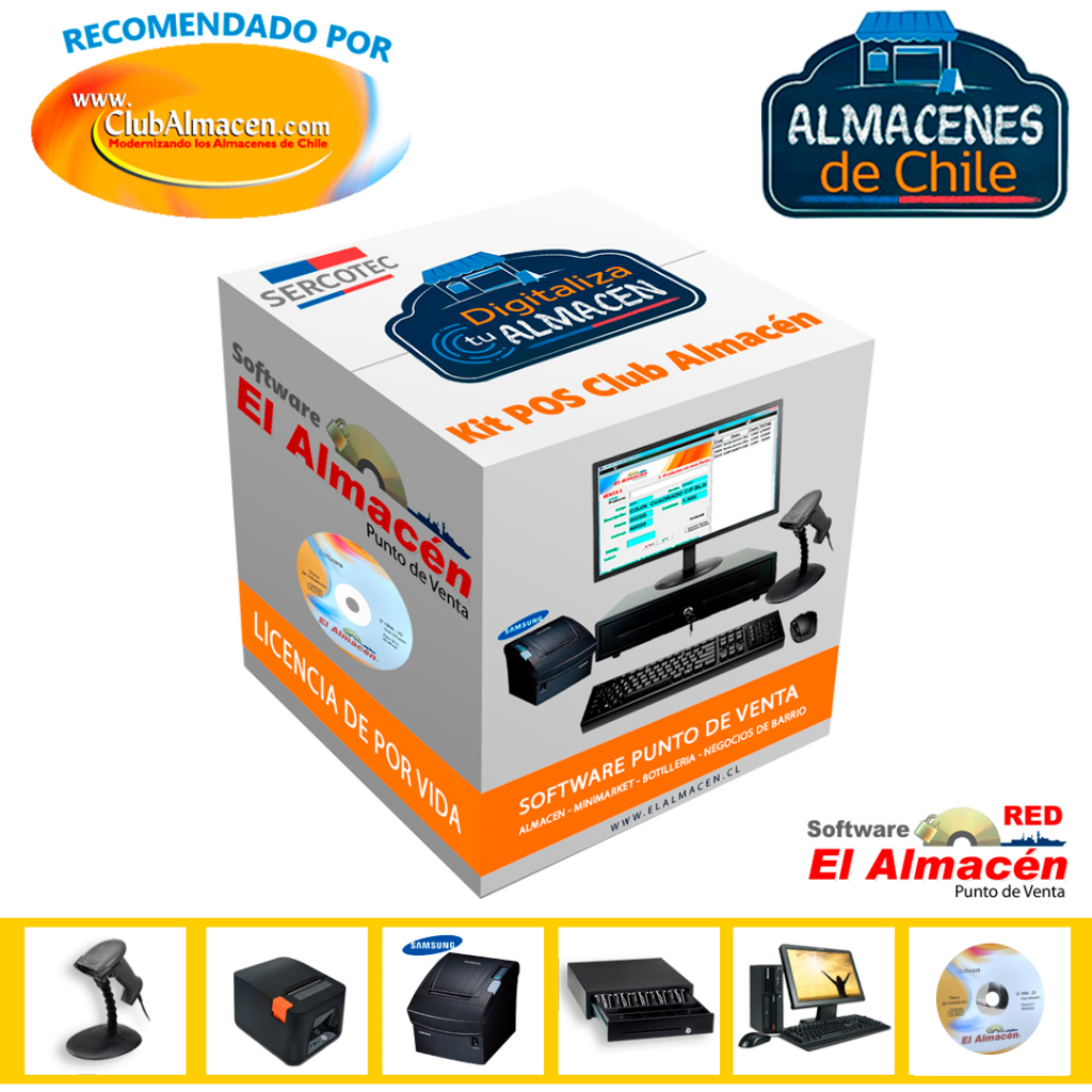 Si has ganado el fondo Digitaliza Tu Almacén y necesitas adquirir un Software de Punto de Venta, computadora, lector de códigos de barras u otros equipos, gracias al convenio entre Club Almacén y SERCOTEC puedes obtener una Licencia de por Vida con un solo pago y un descuento del 20%. Para más detalles sobre los equipos, consulta tu descuento con un asistente de Club Almacén.